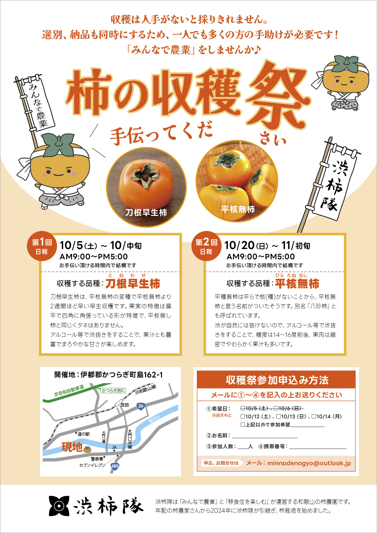 2024年10月5日(土)より、移食住を楽しむが運営する柿農園「渋柿隊」が柿の収穫祭を開催します!